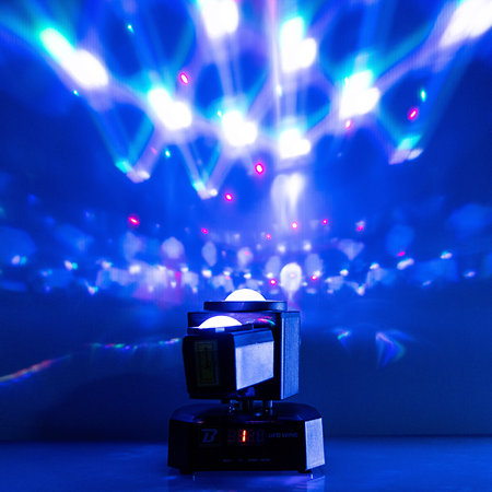 BoomTone DJ UFO Wing combine multifaisceaux, Stroboscope, LASER et Beam en un seul projecteur LED de 50 W, pilotable en DMX, automatique, détection musicale ou via télécommande IR. Compact et léger, il s’installe en quelques minutes sur truss ou pied. Idéal pour clubs, prestations mobiles et animations événementielles professionnelles.