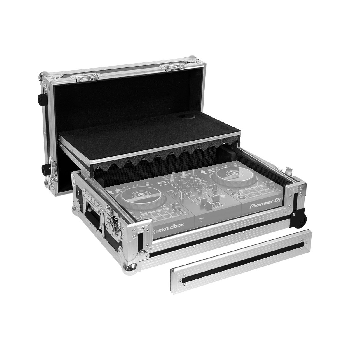 Flight Case conçu pour un contrôleur DDJ 400, intégrant un support d'ordinateur portable.