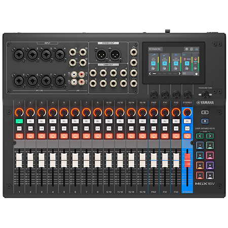 Les faders de 60 mm associés à l’écran tactile rendent le mixage intuitif et agréable sur le MGX16V. Les encodeurs personnalisables simplifient l’accès aux paramètres favoris, pour ajuster rapidement les réglages sans perdre de temps. Cette ergonomie pensée pour toi rend chaque session créative plus fluide et plus plaisante, permettant de se concentrer sur le son plutôt que sur la technique.